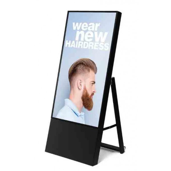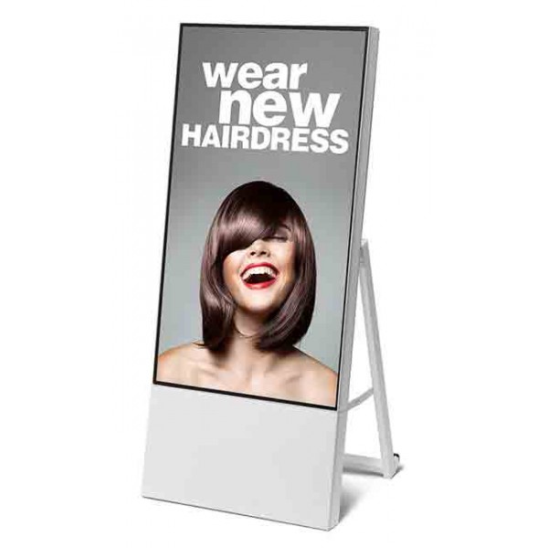 Chevalet numérique mobile pour intérieur avec écran professionnel Samsung 43" ( 109,22cm ) pour l'affichage de vidéos, photos ou autre, prise USB pour la gesion du contenu et le téléchargement des informations, dimensions 560 x 1238x426mm