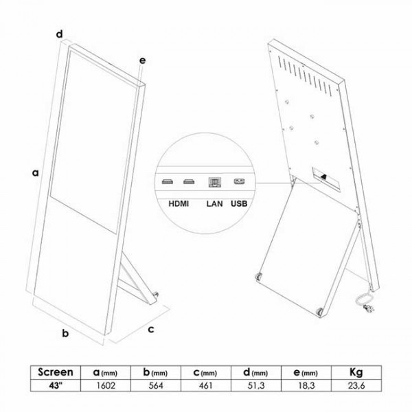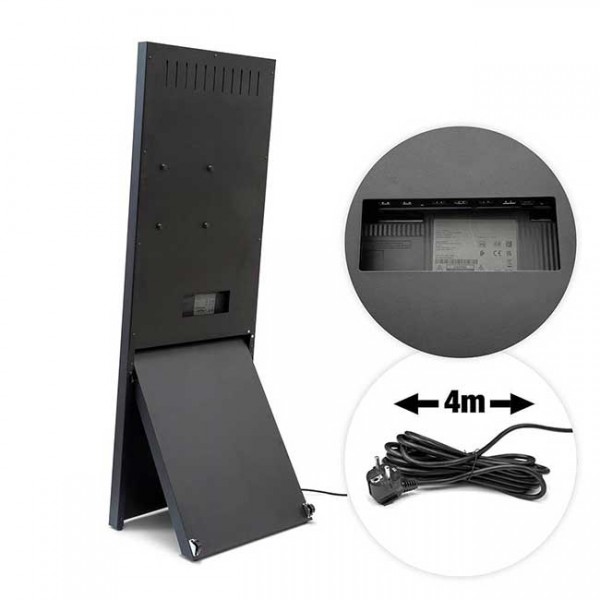 Le chevalet digital 43 pouces fonctionne en lecture multimédia via clé USB, permettant de diffuser :Images - Vidéos - Diaporamas - Messages promotionnels