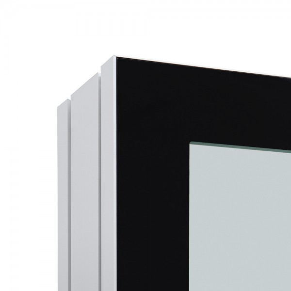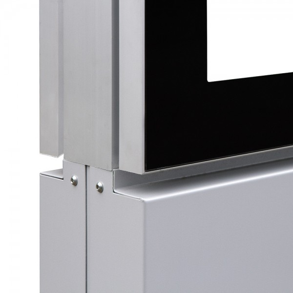 Totem porte-affiche extérieur premium LED 120 x 180 cm double face sur pied, façade verre et cadre imprimé noir de 8,1 mm, porte avec fermeture sécurisée.