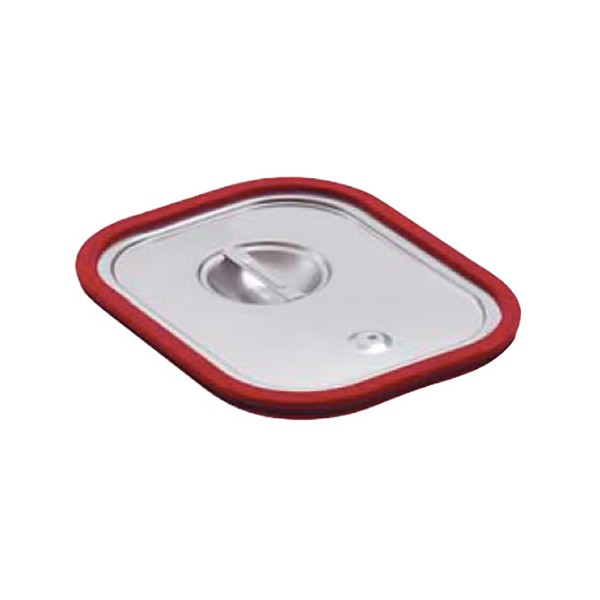 Couvercle à joint silicone pour bacs gastronorme GN 1/4 en acier inoxydable 18/10 selon norme EN 631, dimensions : L 265 x P 162 mm, poids : 0,25 kg