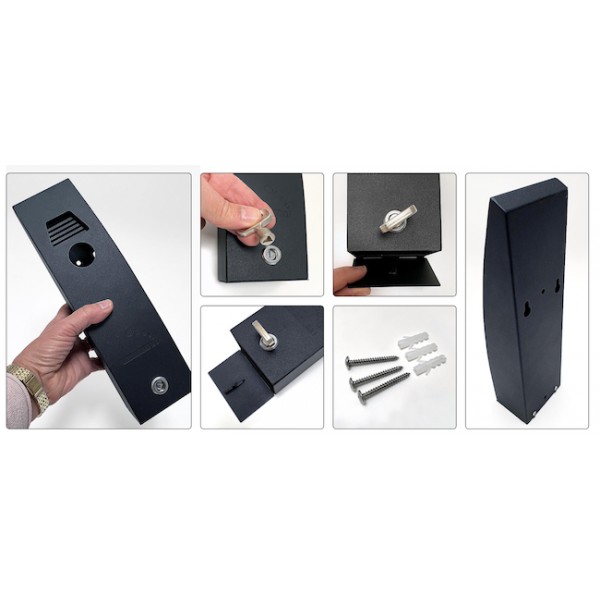 Mini cendrier extérieur mural ( 0,78 litres) acier thermolaqué noir, fermeture à clé