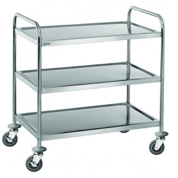 Chariot de service en acier inoxydable TS301, 3 plateaux, 4 roues (dont 2 avec frein), charge utile : 100 kg, dimensions : L 920 x P 600 x H 945 mm, poids : 13 kg