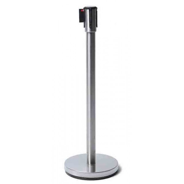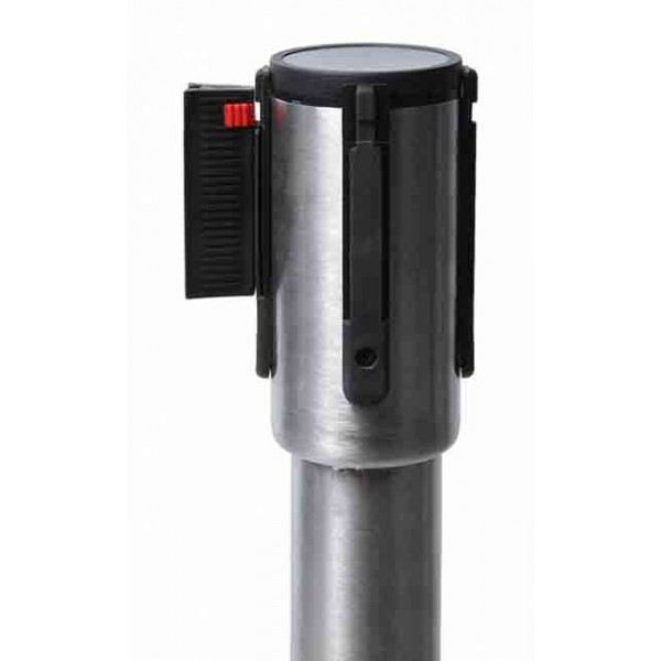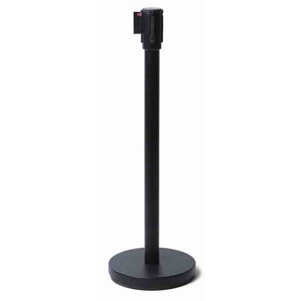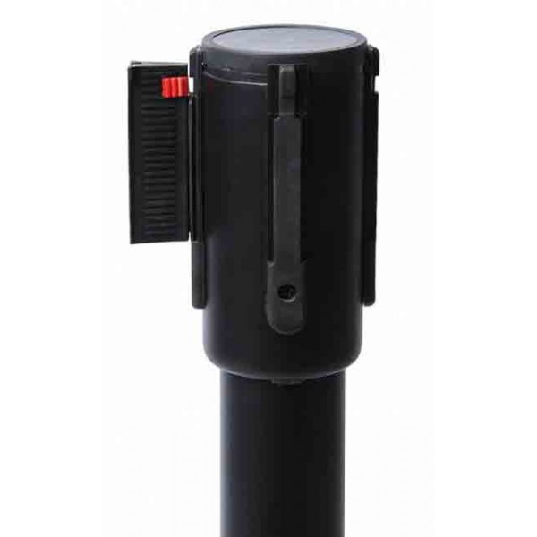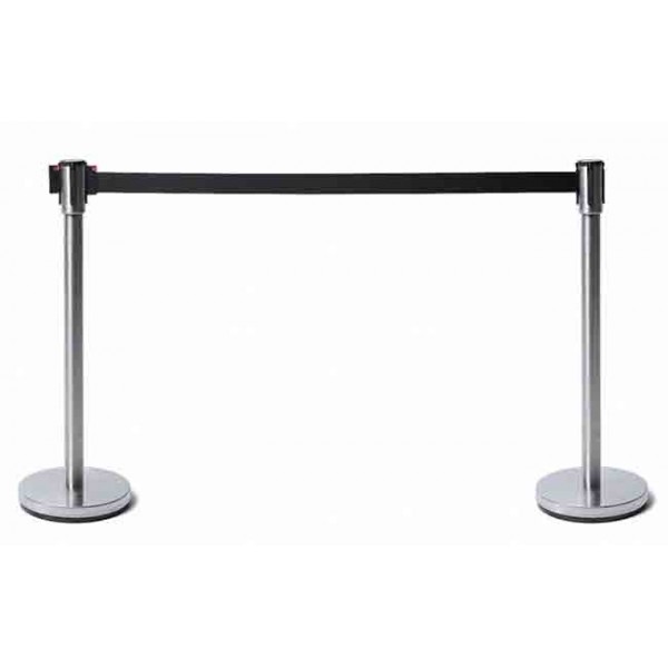 Poteau file d'attente chromé à sangle noir rétractable, longueur de 2.70m, disponible couleur chrome et noir, poteau comprenant 3 pinces d'accrochage. idéal pour le guidage de file d'attente. Hauteur 935mm / poids 8,11kg