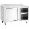 Amoire d'angle professionnelle en inox avec dosseret et porte, dimensions : L 900 x P 900 x H 850-900 mm, étagère intermédiaire ajustable, pieds carrés de 40 x 40 mm, réglage hauteur de la table de 850mm à 900mm, poids 69kg