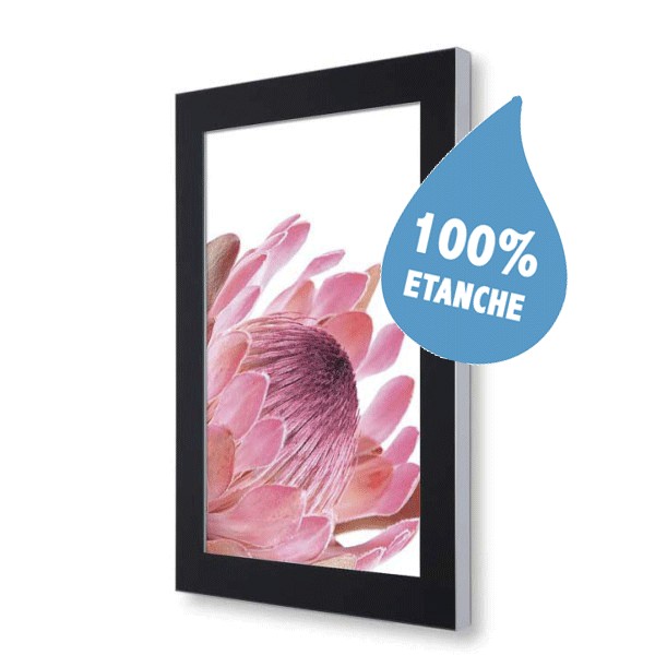 Vitrine d’affichage extérieure A0 ( 841 x 1189 mm ) lumineuse LED : Affichage grand format visible 24h/24, étanche ( normes IP56 ) et ultra visible pour professionnels.Technologie de pointe de LED a point laser. Protection en verre de sécurité de qualité avec bordure noire